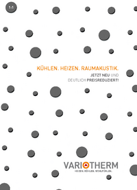 1:1 KÜHLEN. HEIZEN. RAUMAKUSTIK. JETZT NEU UND DEUTLICH PREISREDUZIERT! 1:1 Besonderes Detail: Bei Variotherm werden die Löcher der Akustik-Platten nicht durch Kühl oder Wärme-Leitelemente…